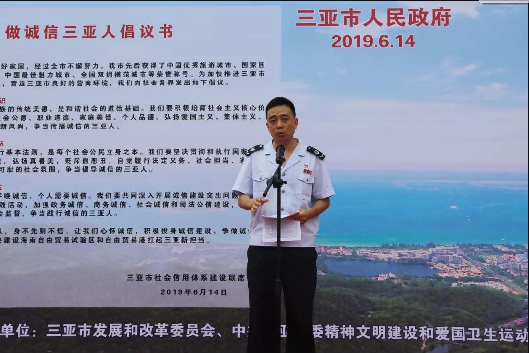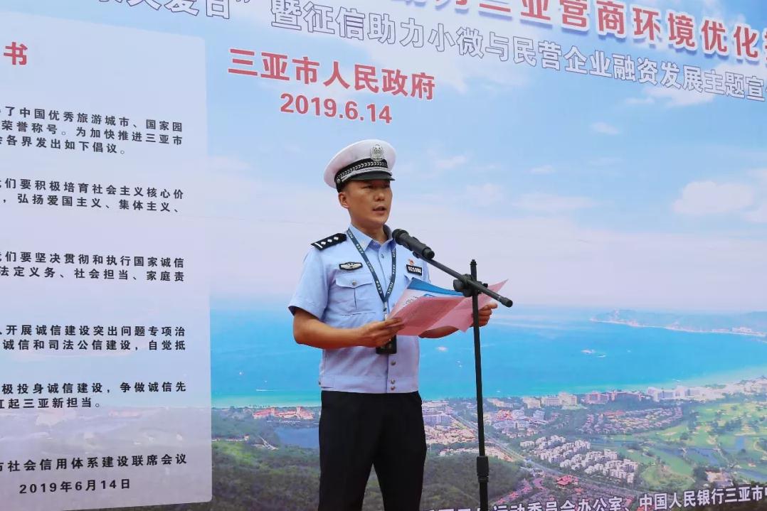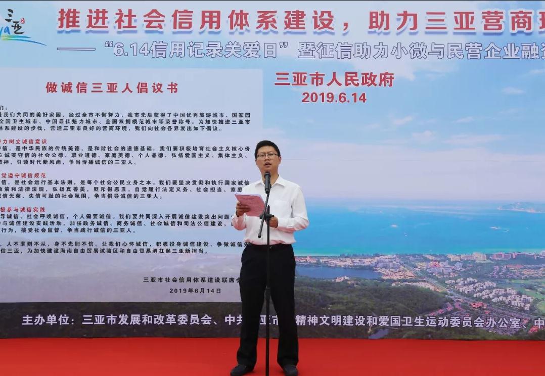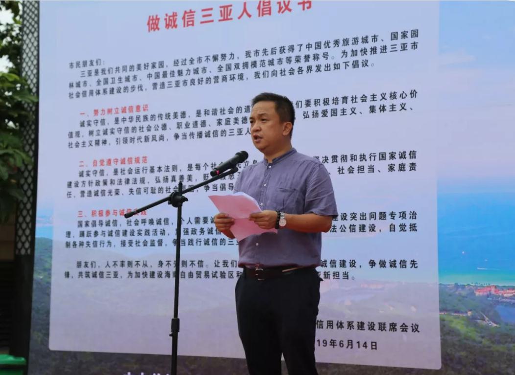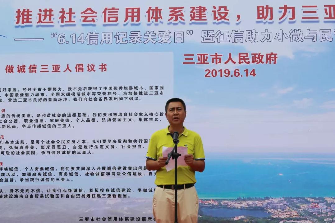中国人民银行三亚市中心支行许可行长介绍了守信的人在政务、生活、融资、旅游等方面可以享受的便利,呼吁社会各界共同营造褒扬激励诚信、约束惩戒失信的良好氛围。